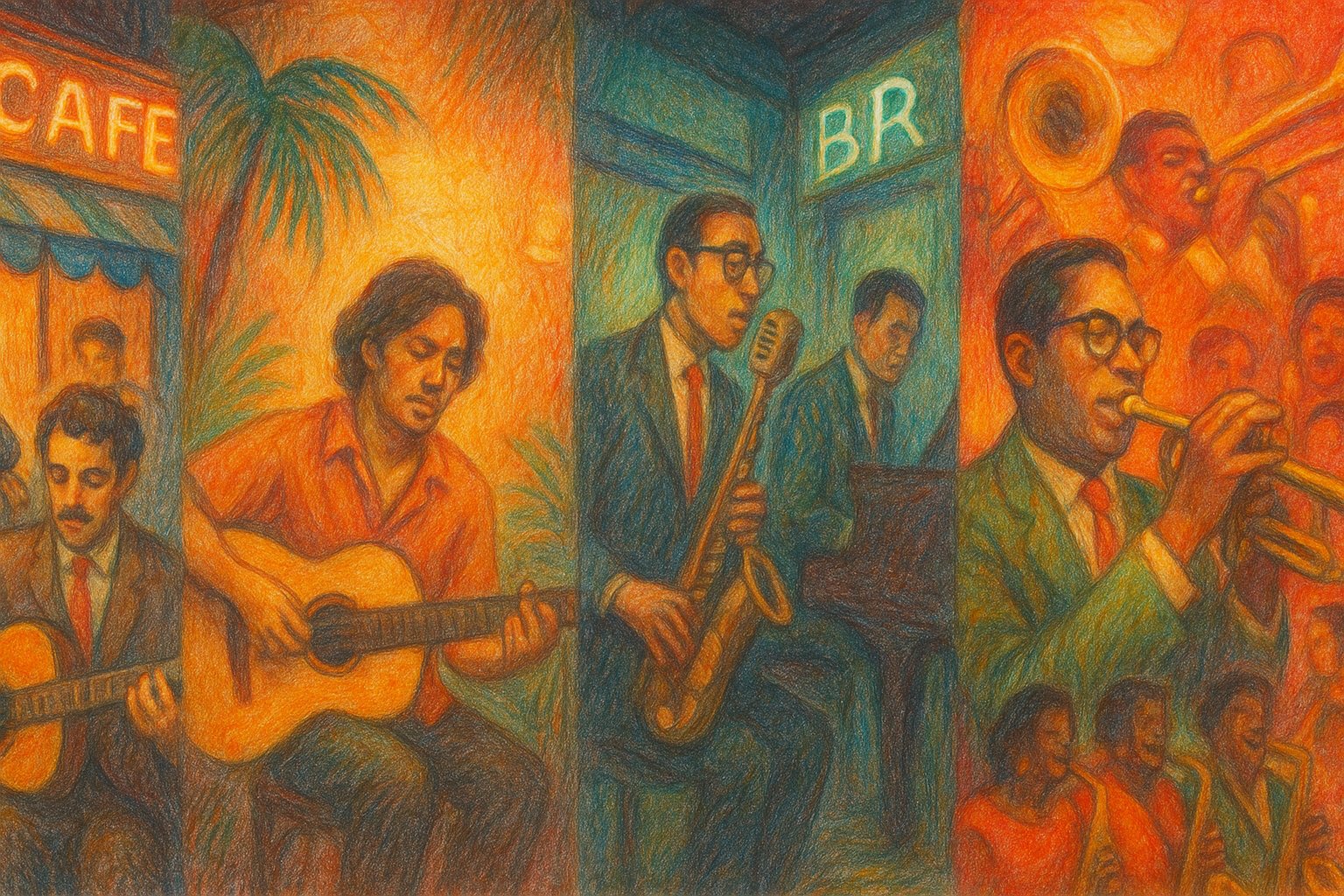 In Brazil, the seeds of bossa nova began to develop toward the end of the decade, drawing heavily from jazz harmony and understated cool-jazz textures. Although the genre would officially explode in the early 1960s, figures such as João Gilberto, Antônio Carlos Jobim, and Luiz Bonfá had already begun experimenting with softer vocal delivery, syncopated guitar patterns, and jazz-influenced chord progressions during the late 1950s. These experiments formed the foundation of a style that would soon captivate audiences worldwide and redefine the relationship between jazz and Latin American music.