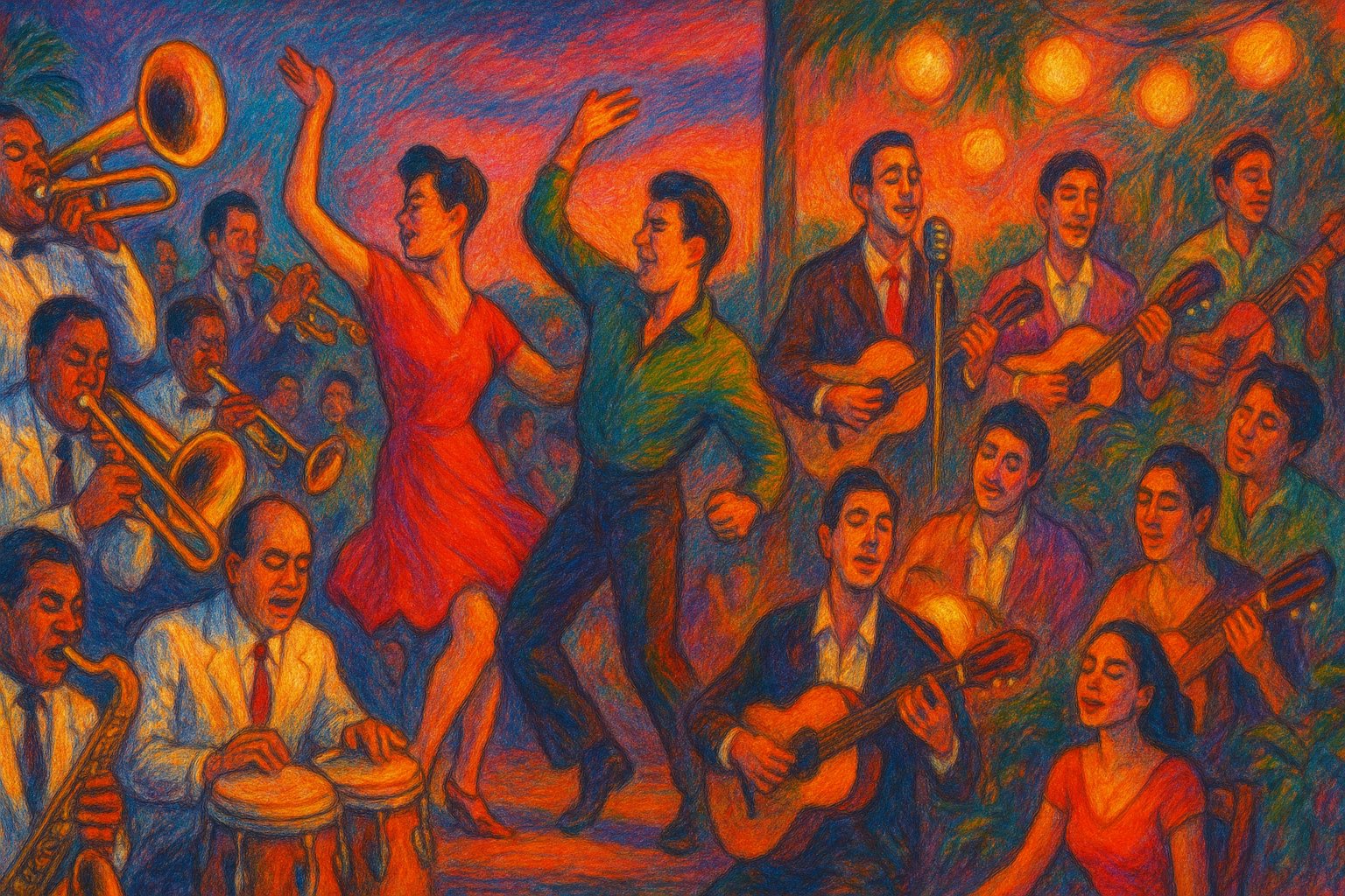 While bolero spoke to the heart, mambo electrified dance floors around the world. Known for its bold brass sections, lively syncopation, and explosive rhythmic drive, mambo became one of the first Latin American genres to achieve truly global popularity. The “King of Mambo,” Pérez Prado, played a crucial role in this cultural expansion. His energetic arrangements—such as “Mambo No. 5” and “Mambo No. 8”—featured powerful horn lines, dynamic percussion, and catchy melodic hooks that made audiences move with excitement. Prado’s orchestra became a global sensation, performing in Mexico City, Havana, New York, Tokyo, and various European capitals. Mambo dance styles flourished in ballrooms and nightclubs from Havana to Los Angeles, and its influence can still be heard in contemporary Latin pop and salsa.