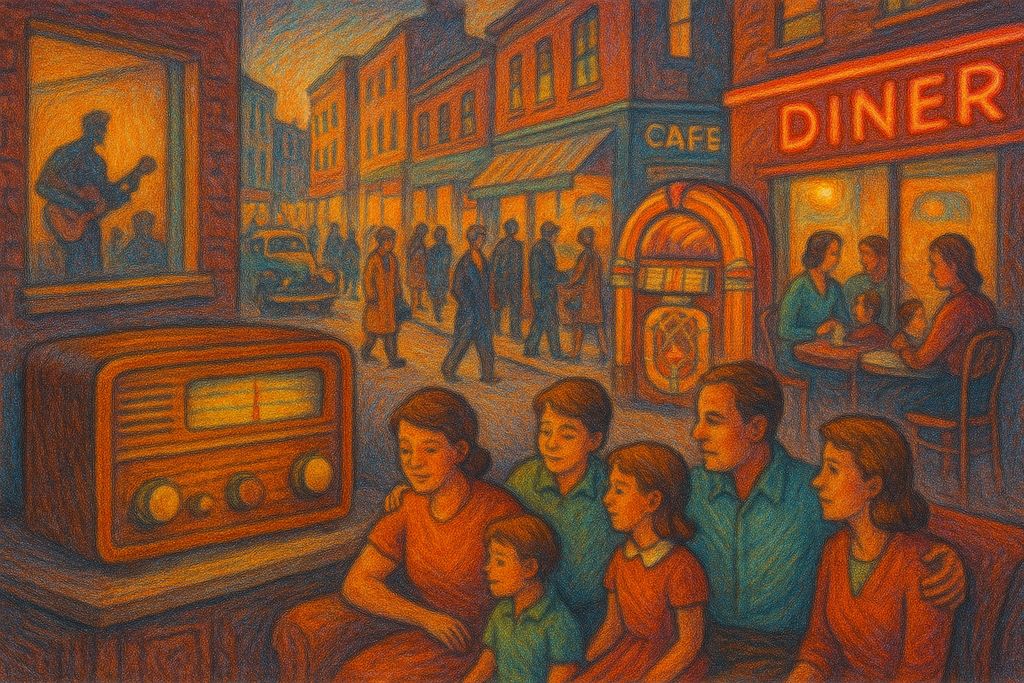 In many countries, the transition from wartime austerity to expanding economic stability transformed how people lived and how they accessed entertainment. The growth of manufacturing, increased availability of consumer goods, and rising household incomes made radios, record players, and televisions accessible to millions of families who previously viewed them as luxuries. This accessibility shifted music from a public or communal activity—experienced mainly in cinemas, clubs, or cafés—to an intimate component of domestic life. Families gathered around their living-room radio sets not only for news and dramas but increasingly for music programs that brought diverse sounds into the home. This shift democratized musical taste, allowing genres such as jazz, blues, country, chanson, mambo, and emerging rock ’n’ roll to reach audiences far beyond their original cultural borders.