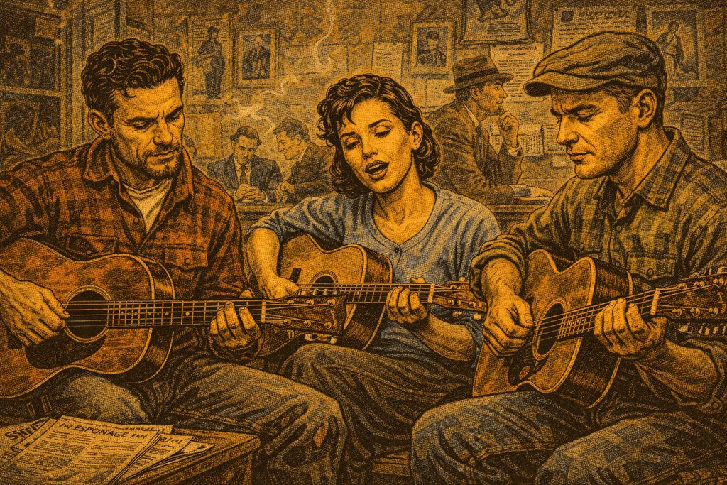 Alongside country music, folk continues to develop as a quieter but persistent presence in the 1950s. It does not dominate charts or television screens, yet it carries a different kind of weight. Folk music is less concerned with entertainment than with memory. It preserves stories, struggles, and values that are at risk of being forgotten in a rapidly modernizing society.