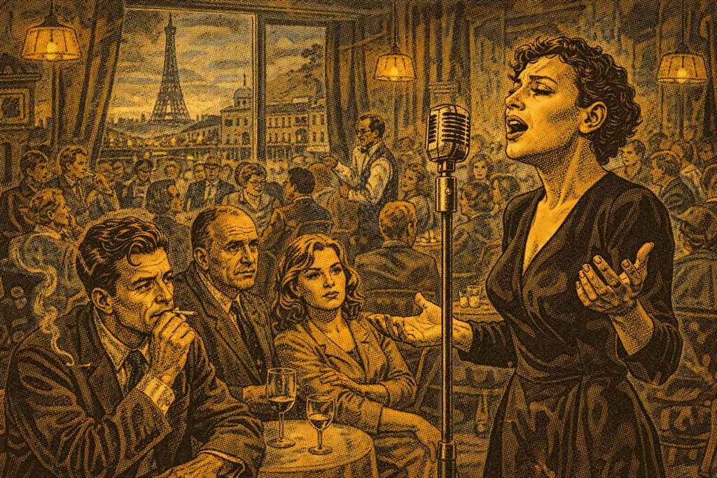 At the center of this tradition stands Édith Piaf. By the 1950s, Piaf is already a national figure, but her importance deepens rather than fades. Her performances are marked by intensity and directness. She sings of love and loss without distance or irony. Each phrase feels personal, almost confessional, yet it speaks to collective memory. In a society still reckoning with occupation, collaboration, and grief, this honesty resonates.