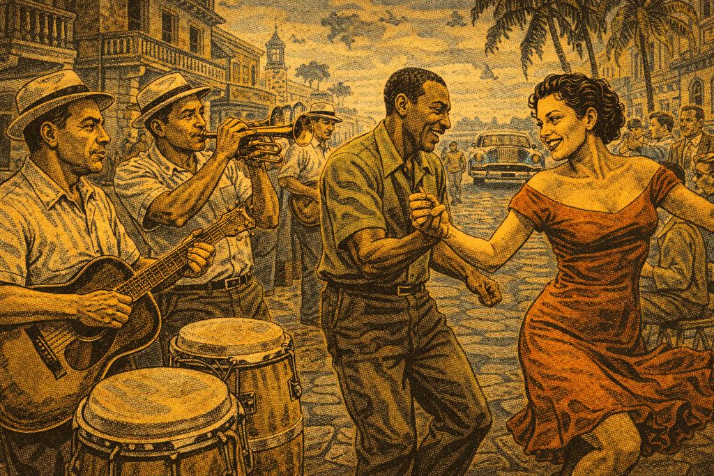 While Europe processes memory and recovery, music in Latin America and the Caribbean moves with a different energy. Dance remains central, not as rebellion, but as continuity. In the 1950s, styles like mambo, son, and early salsa circulate widely, blending African rhythms, European harmony, and local traditions into forms that feel both communal and modern.