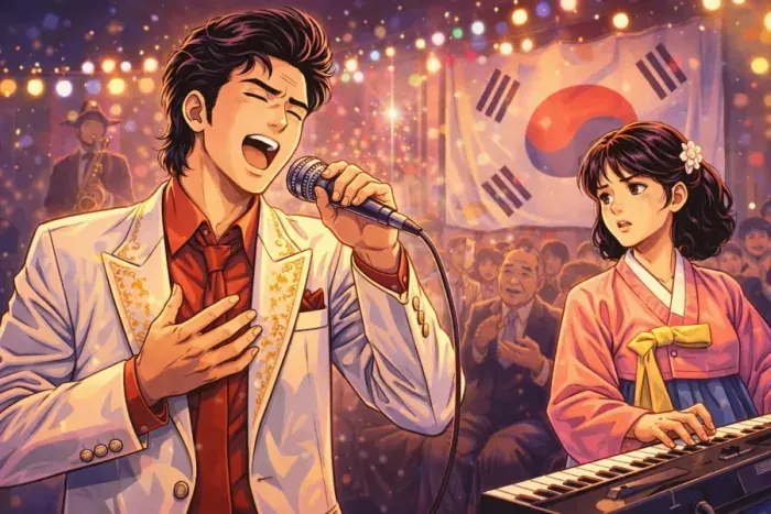 While Japan’s pop industry expanded through kayōkyoku, South Korea followed a different path shaped by its own cultural history. One of the central musical forms of early Korean popular music was trot, a genre that developed during the first half of the twentieth century and remained widely popular for decades.
