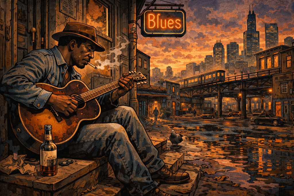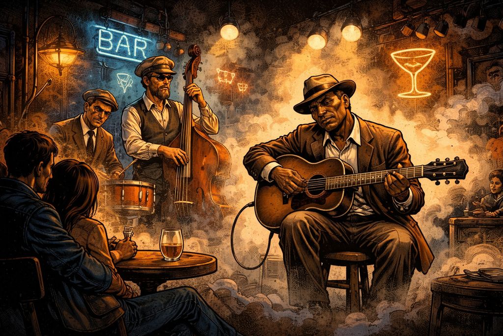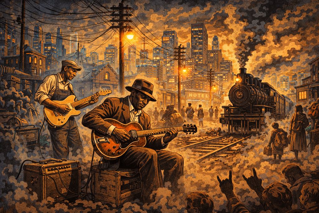 The Great Migration had a big impact on people’s lives and music. Many Black people moved from rural areas in the South to cities like Chicago, Detroit, and St. Louis. They brought their traditional music with them. In these new environments, the blues became more compact, straightforward, and intense. Amplified guitars and microphones made it so the voices could be heard clearly without losing any of their complexity. The rhythm sections became more noticeable, and songs felt more connected to the physical space around them instead of being more personal reflections.
