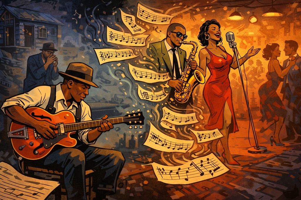 As the blues moved from rural areas into growing cities, this way of thinking about survival didn’t disappear. It adapted. New instruments, louder environments, and changing audiences began to change how that weight was delivered. The next shift does not replace the blues. It reorganizes it around rhythm, movement, and group energy, getting things ready for what’s coming next.